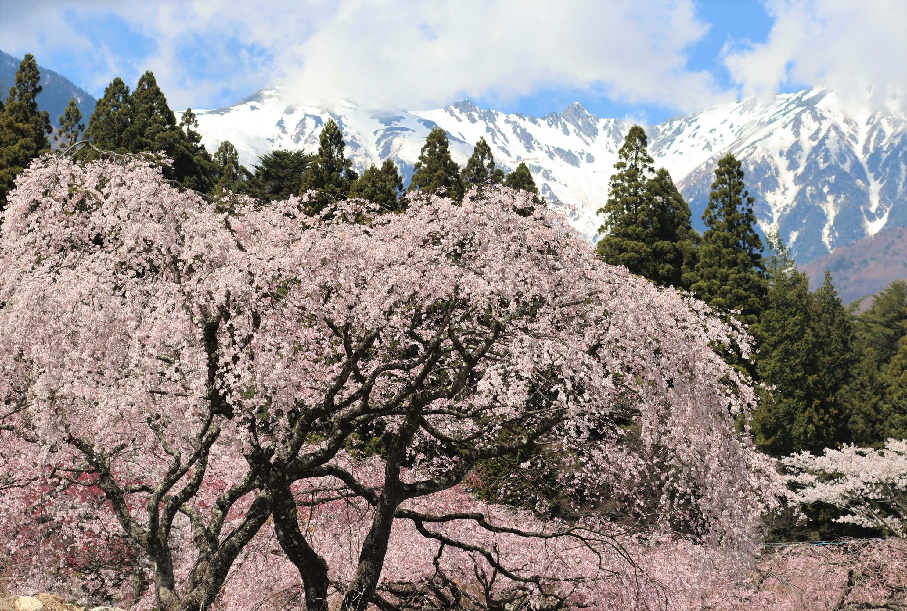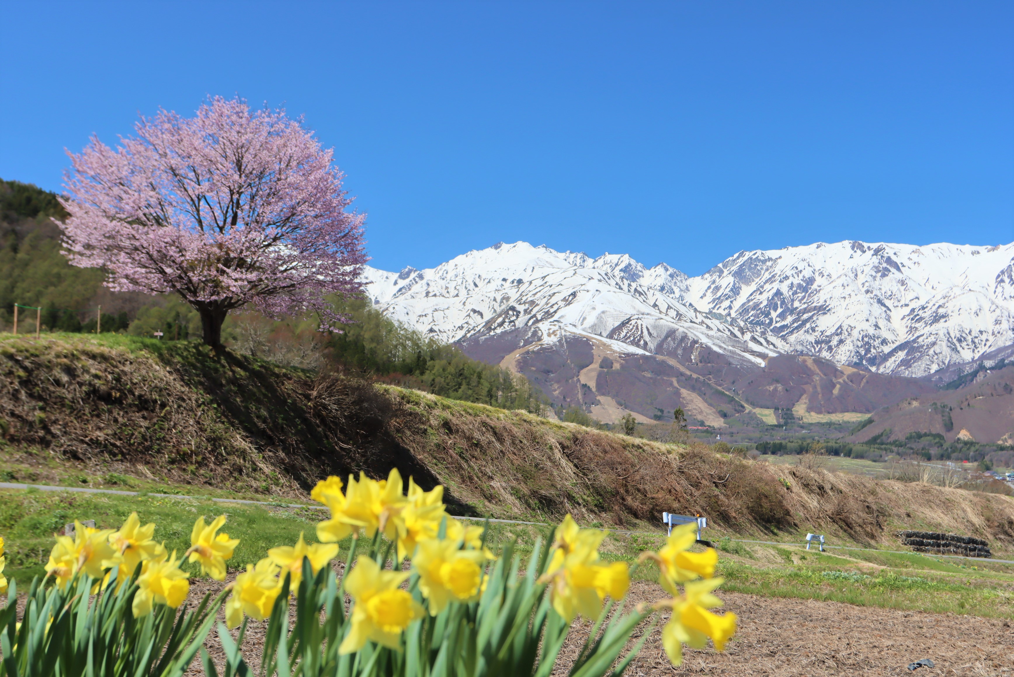 4月26日 白馬村大出公園・野平の一本桜 オオヤマザクラ