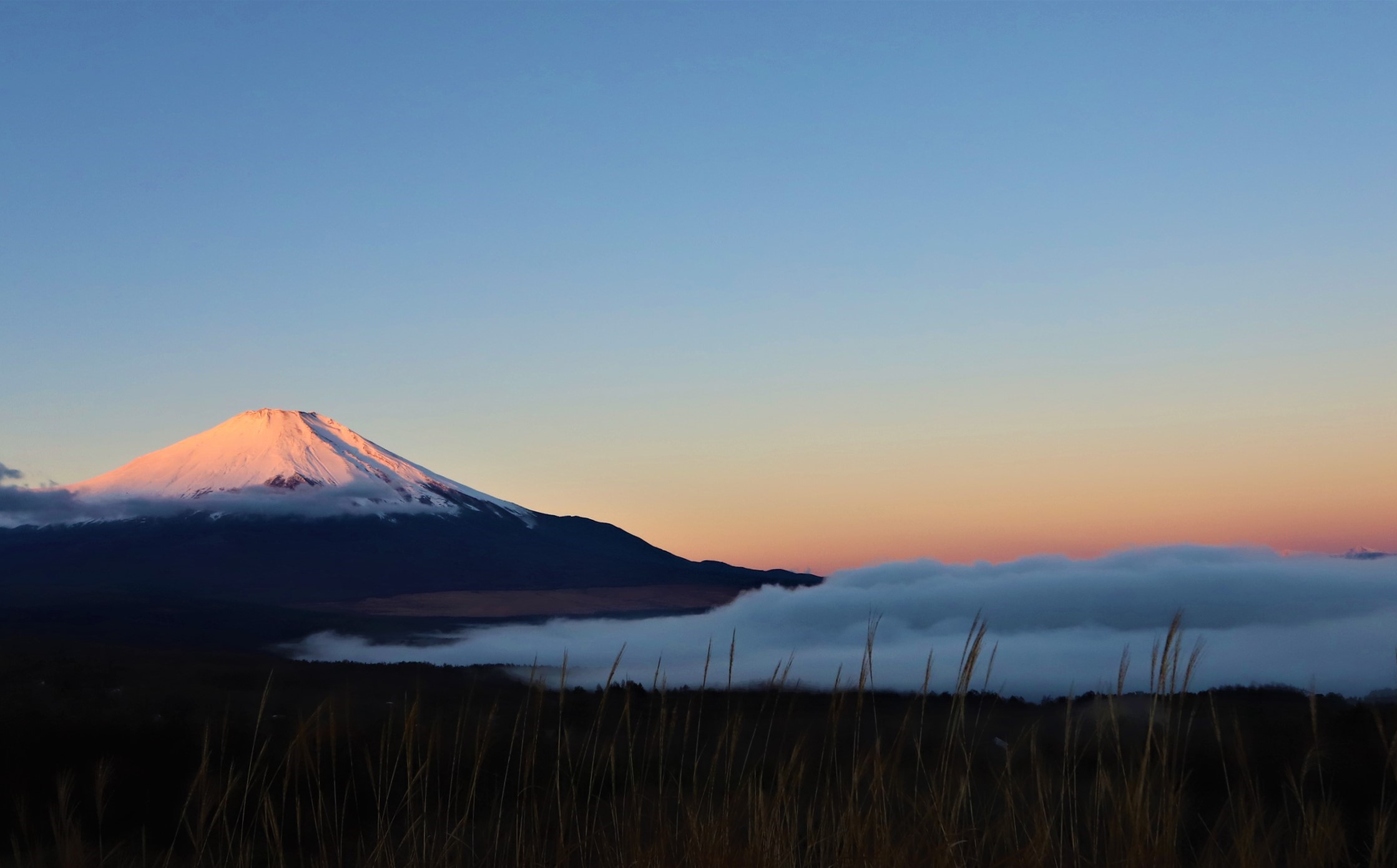 2月18日 山中湖からの富士山 河口浅間神社の富士山遥拝所