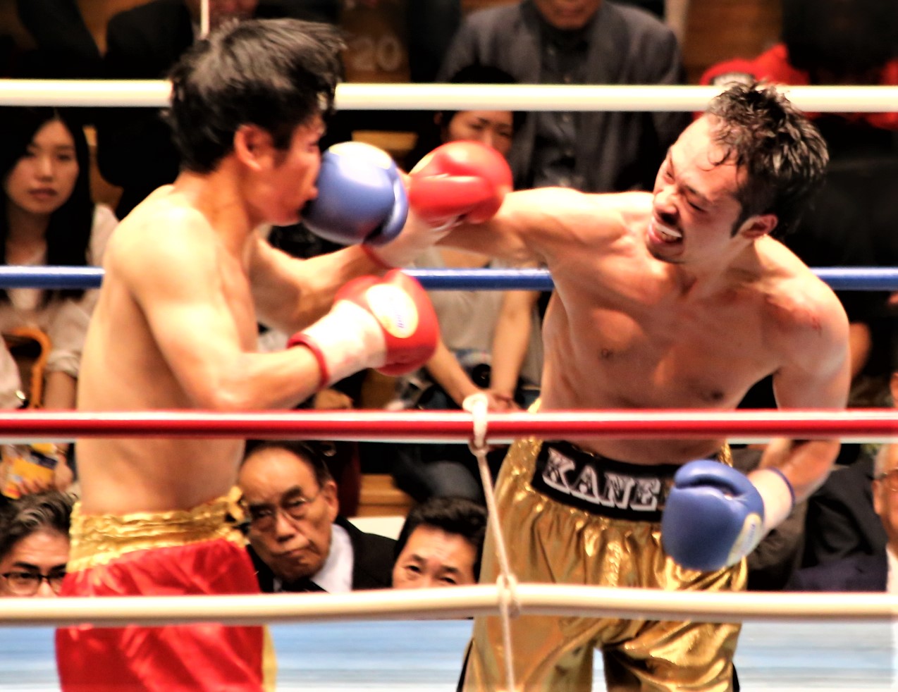 力は互角のようで、6R1分30秒には相手のダウンを奪うまでいったが