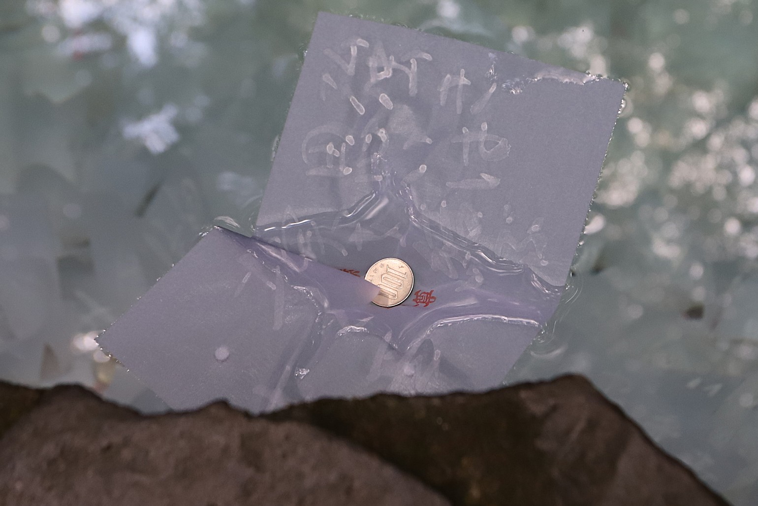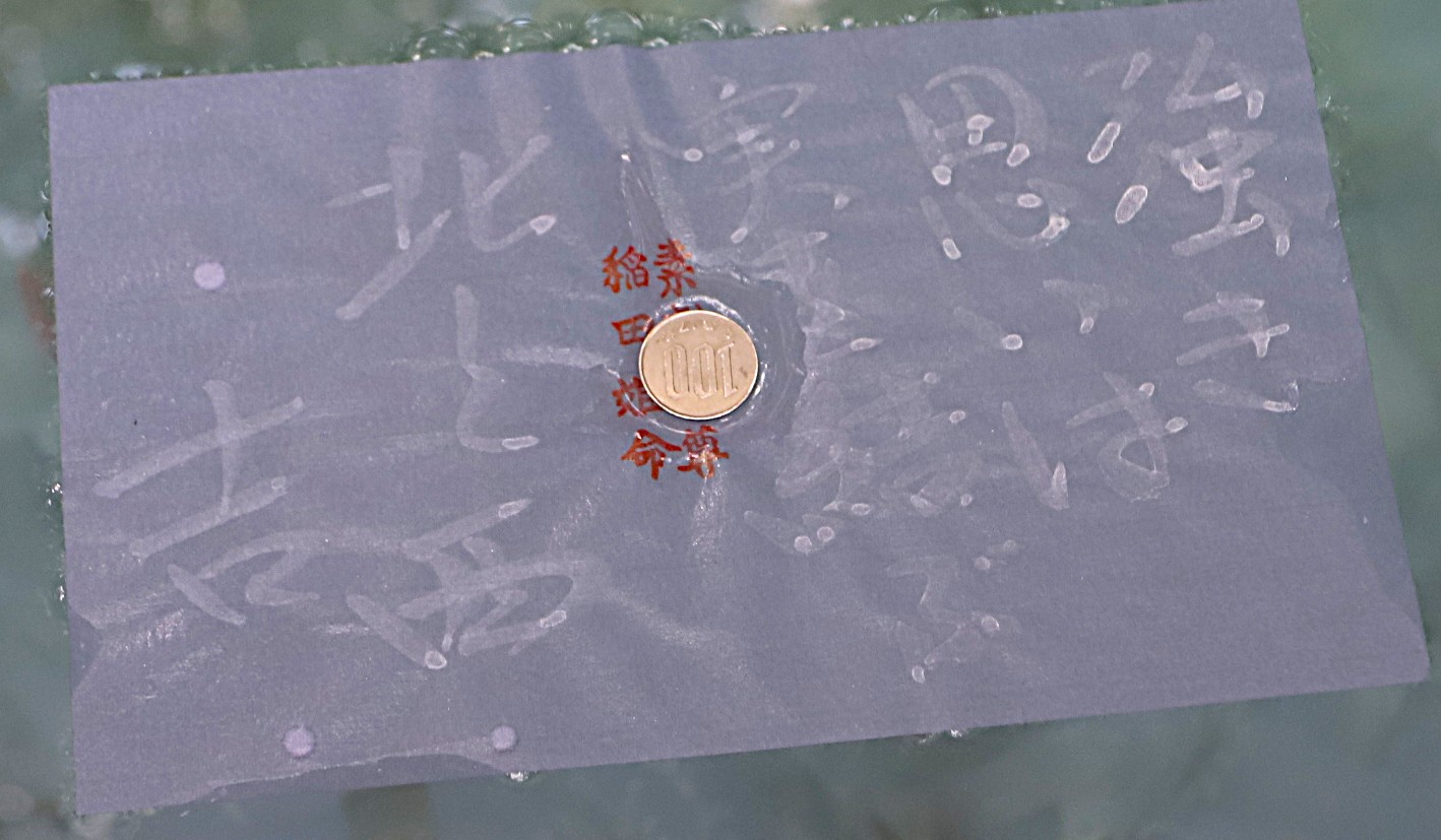 紙が濡れると字が見えてきます