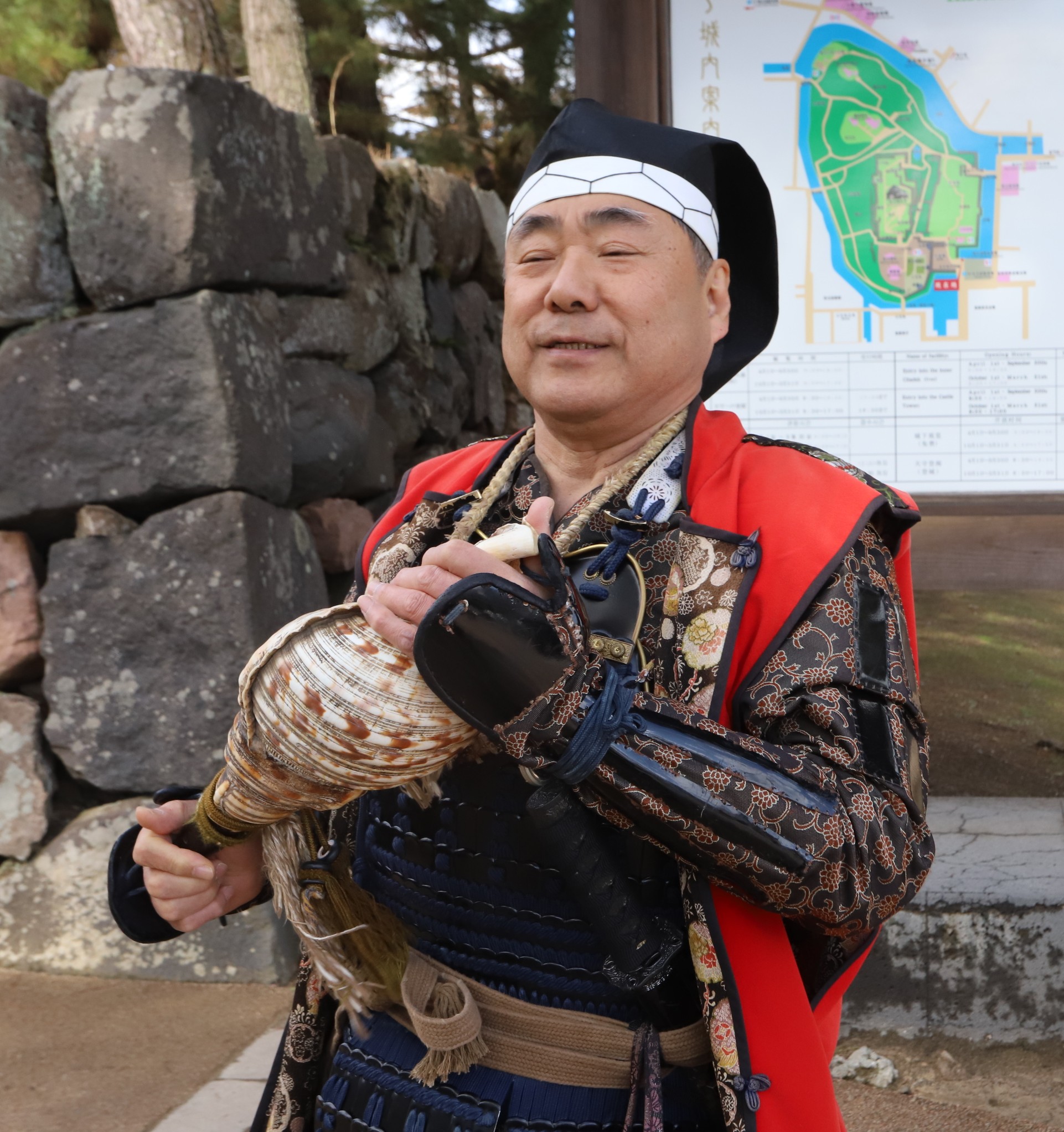 城を歩いていると、法螺を吹いていただきました